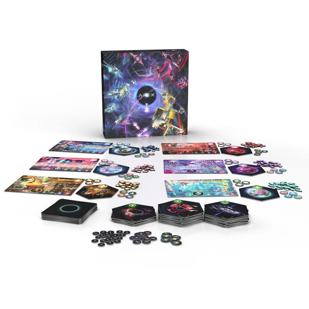 Découvrez un jeu de stratégie minimaliste pour 2 à 6 joueurs dans lequel diverses civilisations rivalisent pour la domination galactique par l'influence, le progrès technologique et la guerre. Avec ses mécaniques simples et un gameplay rapide, Apex propose un 4X accessible à un public casual et familial, tout en offrant un véritable défi stratégique aux joueurs chevronnés grâce à ses mécanismes symétriques et un hasard minimal. Parviendrez-vous à émerger victorieux dans ce conflit interstellaire ?