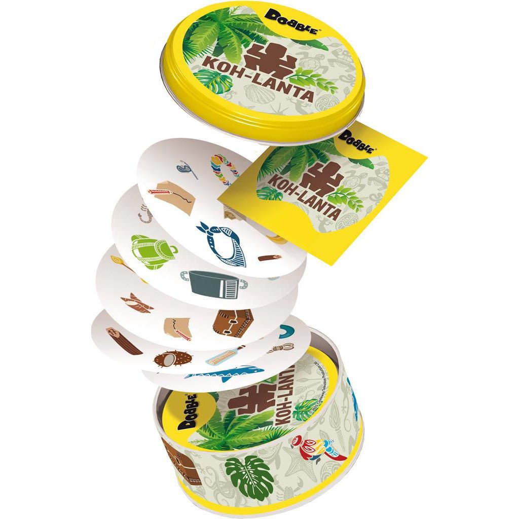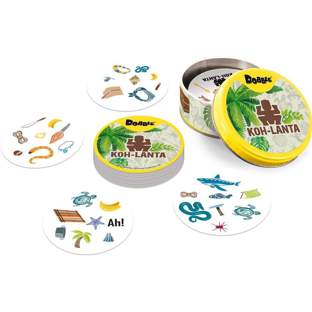 Dobble Koh-lanta est un jeu de société captivant qui fusionne l'excitation de Dobble avec l'aventure emblématique de Koh-lanta. Conçu pour 2 à 8 joueurs, ce jeu met à l'épreuve la rapidité et l'acuité visuelle des participants. Chaque carte est unique et contient huit symboles. Il y a toujours un seul symbole en commun entre deux cartes, et c'est aux joueurs de le trouver le plus rapidement possible. Le thème de Koh-lanta ajoute une touche d'aventure et de compétition, où les joueurs s'affrontent dans des défis inspirés de l'émission, alliant stratégie et rapidité. Parfait pour les soirées entre amis ou en famille, Dobble Koh-lanta promet des heures de divertissement intense et de fous rires.