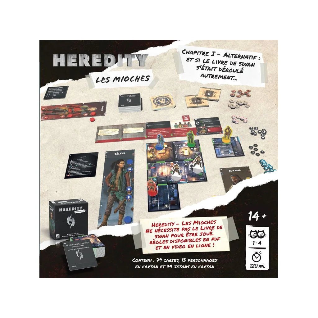 Heredity : Les Mioches reprend les éléments captivants du premier chapitre du Livre de Swan, en offrant un scénario plus fluide et agrémenté d’une touche d’humour. Ce jeu propose une expérience immersive où chaque partie réserve son lot de surprises, même pour ceux connaissant déjà l’histoire originale. Un excellent moyen de plonger dans un univers intrigant mêlant suspense et découvertes.