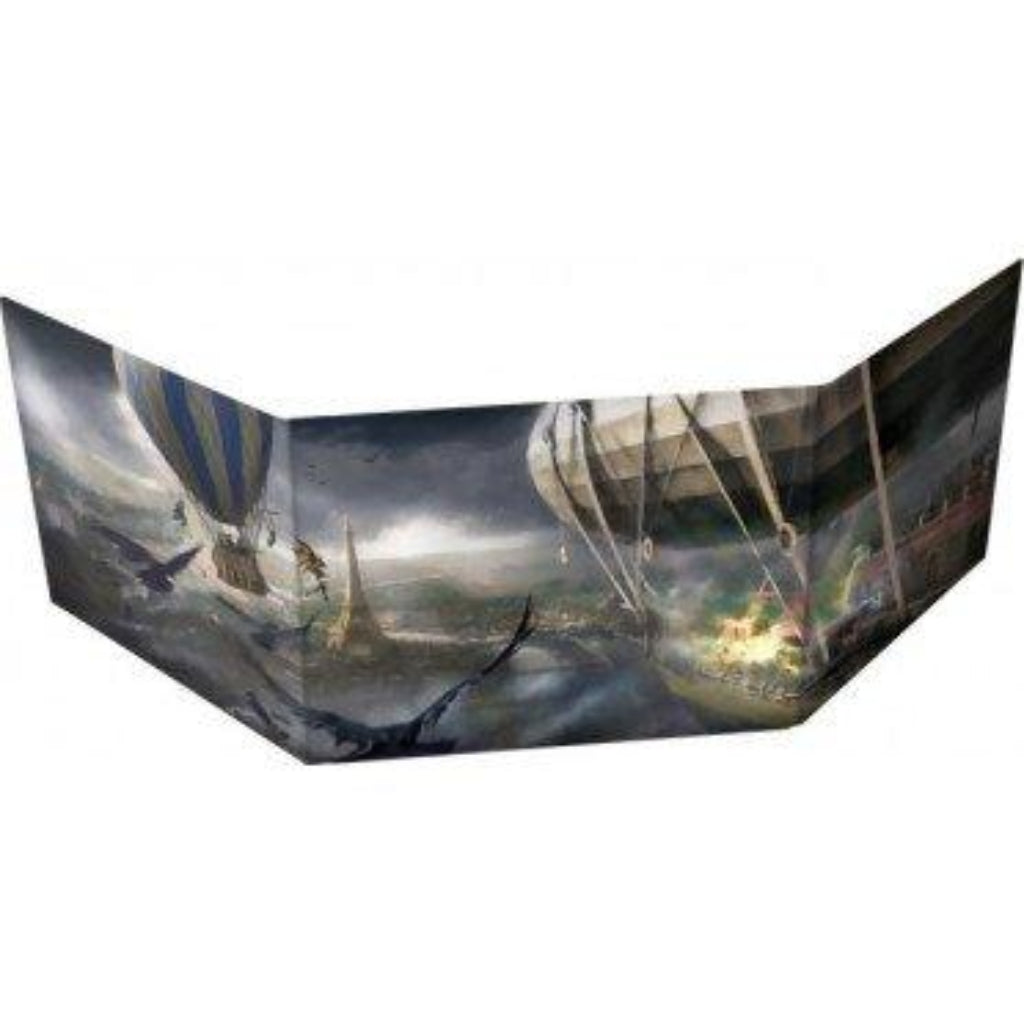 - Un écran en 3 volets rigide au format paysage, illustré au recto par un formidable combat aérien au-dessus de Paris et rassemblant au verso toutes les informations nécessaires pour le meneur de jeu en cours de partie;