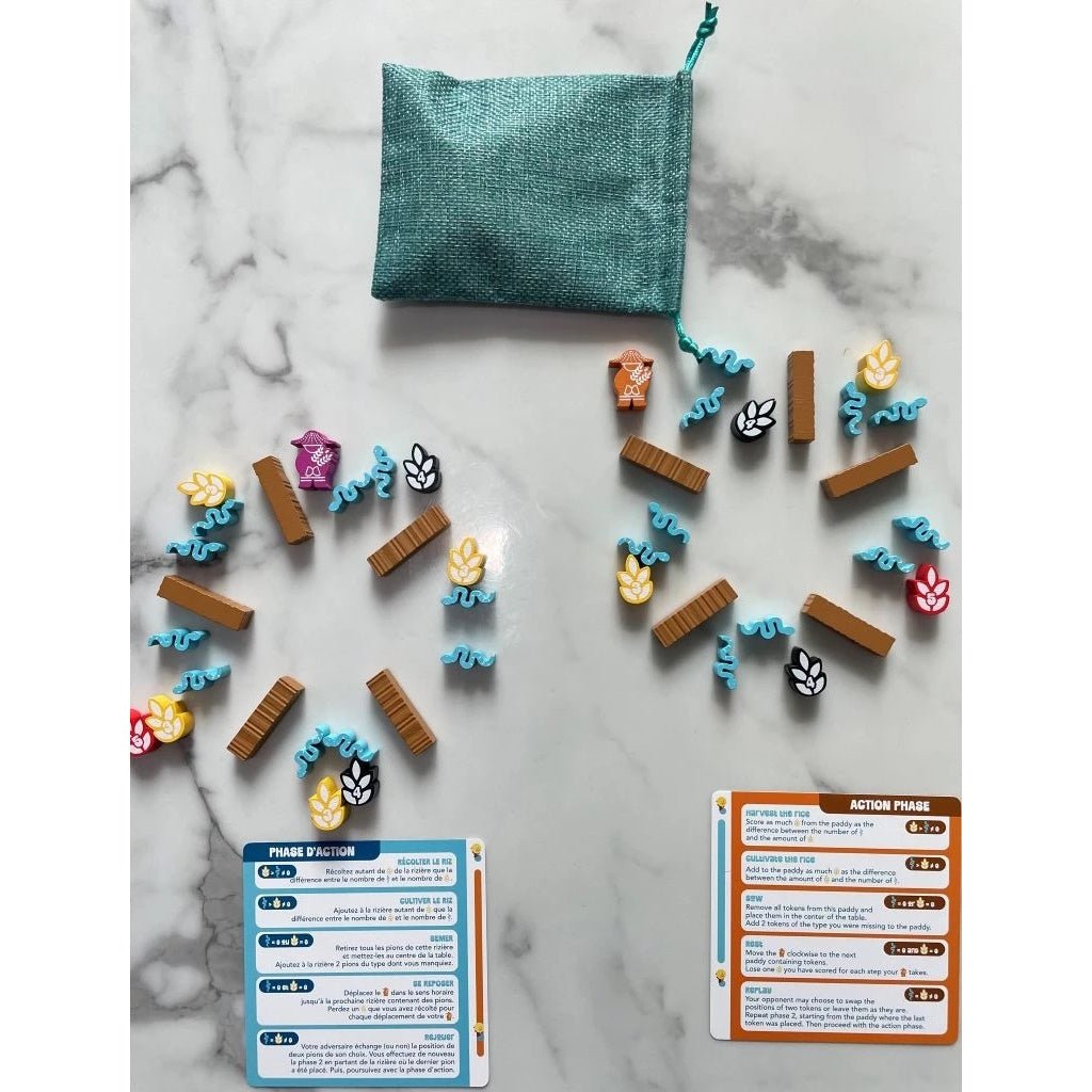 Déplacez habilement vos meeples dans les rizières pour activer des effets, limiter les reptiles et optimiser vos récoltes. Mais attention : plus les serpents sont nombreux, plus la récolte est abondante… à condition de garder le contrôle !