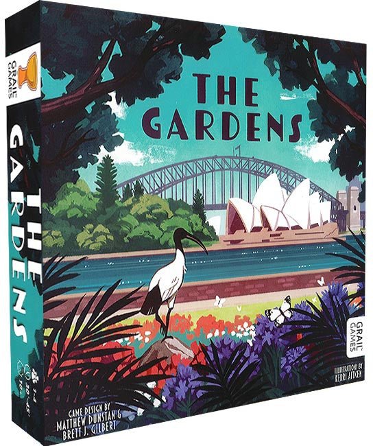 Dans The Gardens, les joueurs tirent des cartes décrivant différentes caractéristiques des jardins et les utilisent pour construire leur propre portion devant eux. Les joueurs marquent ensuite des points en fonction de ce que leurs visiteurs voient lorsqu'ils passent devant les différents parterres de fleurs, les étangs, les arbres indigènes et les statues des Jardins. Le tableau que vous construisez comporte trois rangées - bord de l'eau, herbe et ville - et vous ajoutez une carte par tour jusqu'à ce que la zone soit remplie.