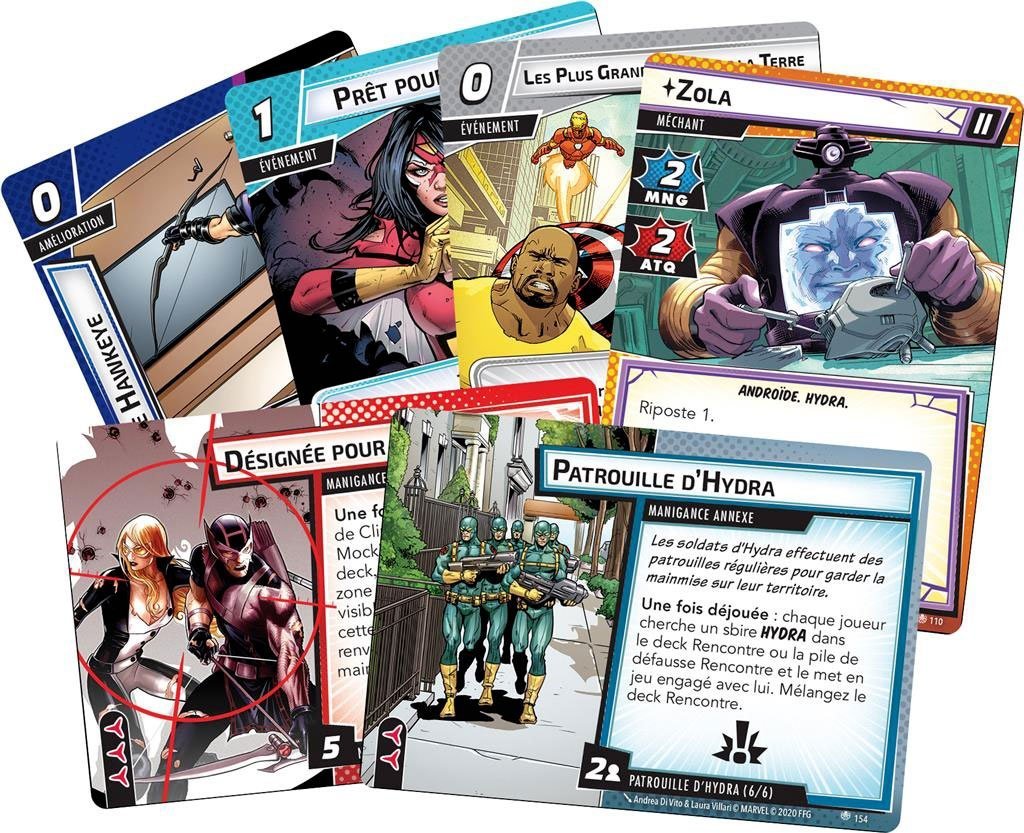 Jamais tu ne me vaincras ! Le temps le fera peut-être… mais certainement pas quelqu’un de ton acabit ! Je suis de ceux qui ont le courage de saisir le monde par la gorge ! – Johann Shmidt, Crâne Rouge. Cette boîte d’extension de 265 cartes vous permettra d’affronter l’infâme Crâne Rouge, les forces d’Hydra et les mercenaires sans cœur qui sont à leur service. L’Avènement de Crâne Rouge vous propose cinq nouveaux scénarios liés les uns aux autres qui narrent un récit plein de rebondissements et qui mettront au défi les plus aguerris des héros ! Deux nouveaux héros viendront également renforcer votre équipe pour lutter contre ces redoutables méchants.