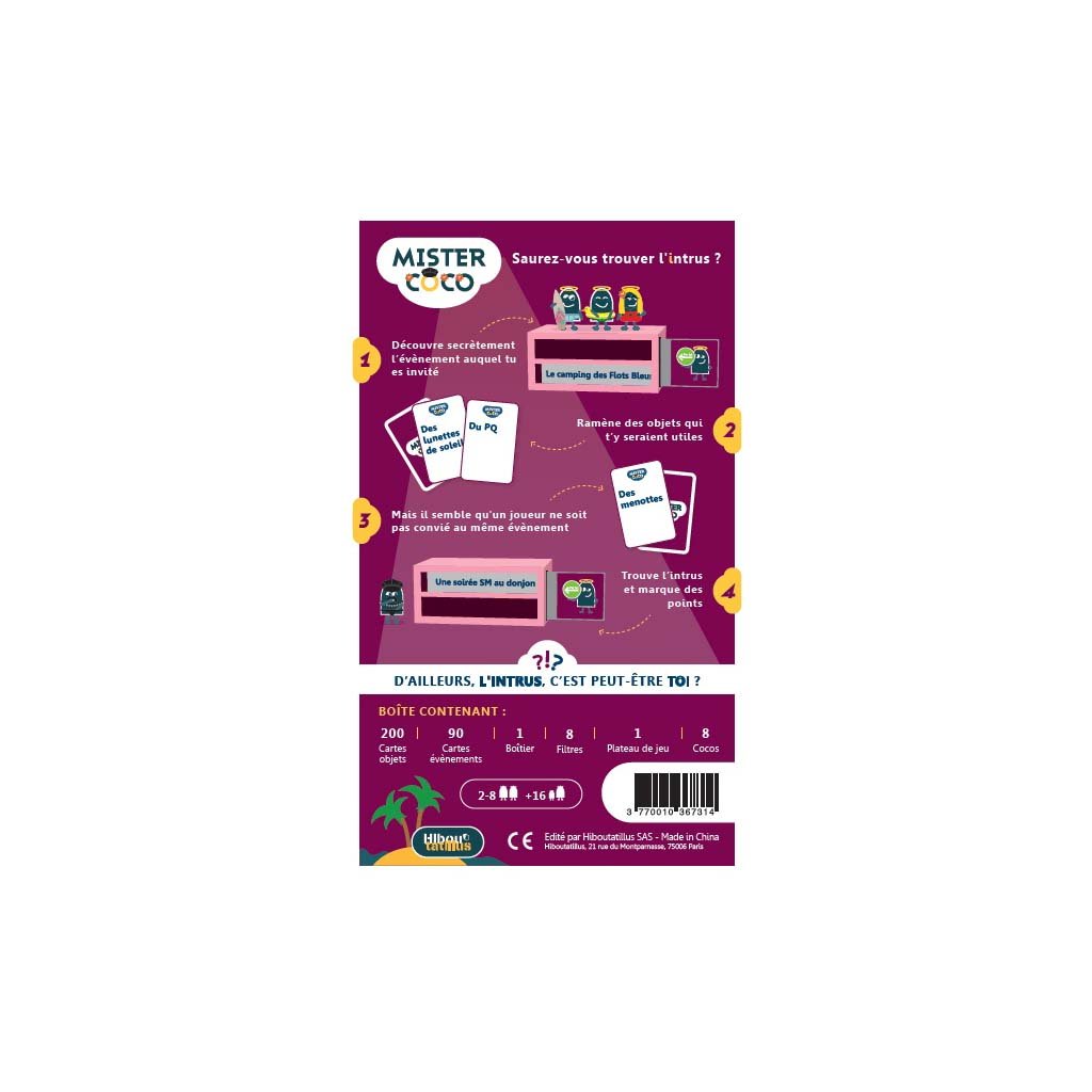 Aucun des joueurs de Mister Coco ne sait s'il est, ou pas Mister Coco. Tout le monde est dans le flou et devra utiliser subtilement des cartes objets mis à sa disposition pour tester l'assemblée des joueurs et se trouver des points communs avec ceux qui sont convié au même événement que lui... Ou a contrario avoir la confirmation qu'il est bien l'intrus, Mister Coco.