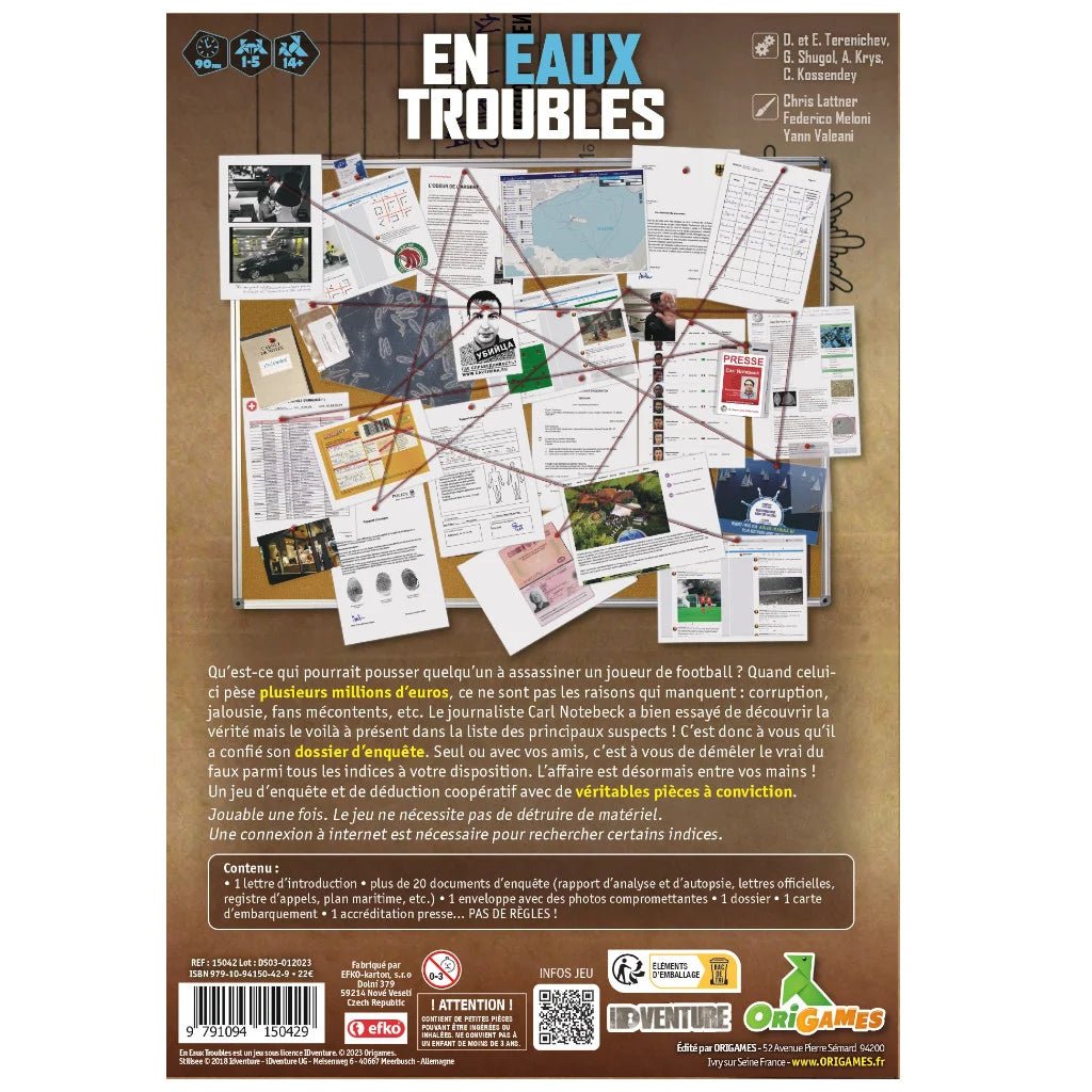En eaux Troubles est le troisième scénario de la gamme Scènes de Crimes : un jeu d’enquête et de déduction coopératif avec de véritables pièces à conviction.