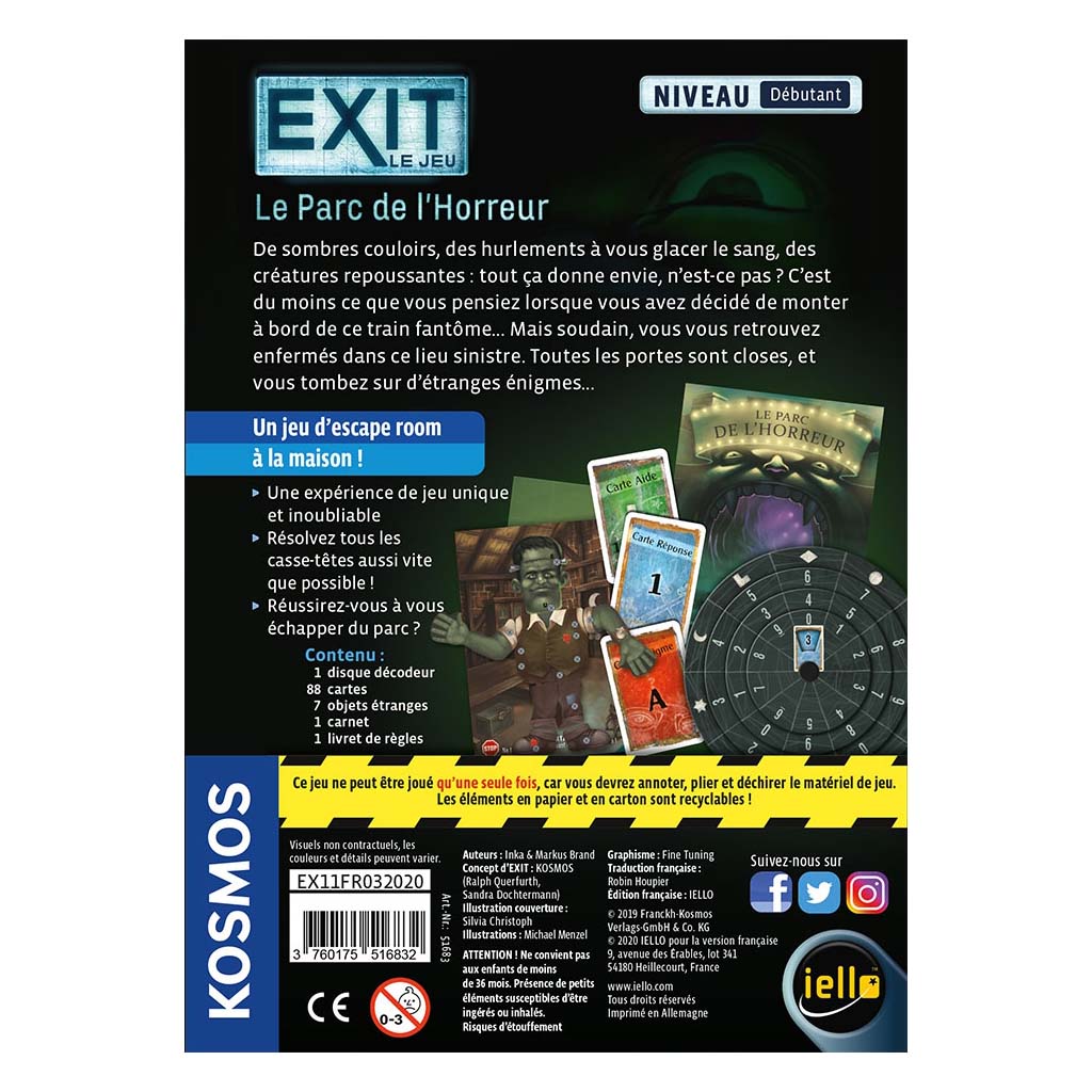 EXIT est un jeu qui reprend les sensations des "escape games". Muni d'indices, de matériel et d'un décodeur, vous aurez pour mission de sortir du jeu le plus rapidement possible.
