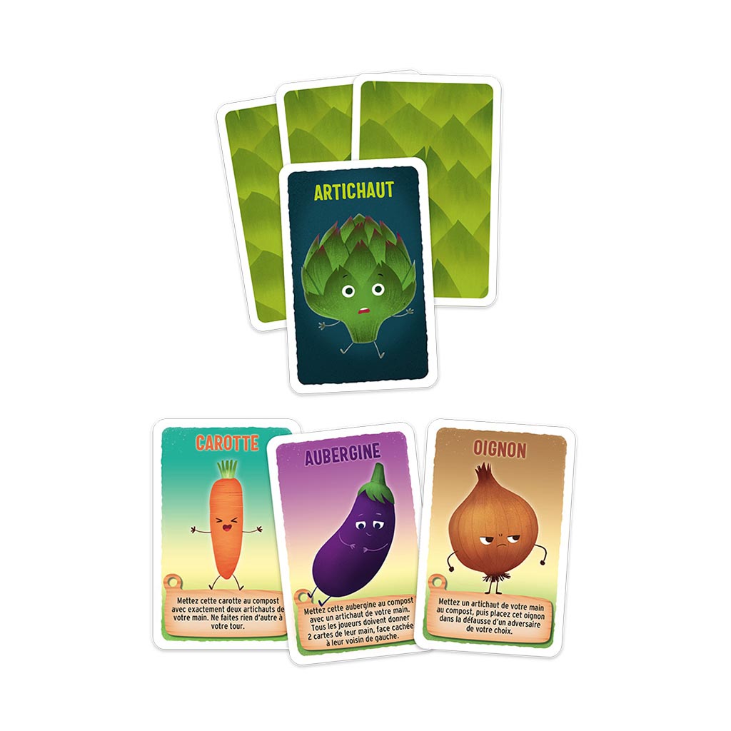 Votre objectif est de vous débarrasser de vos artichauts ! Pour cela, vous devez aller chercher de nouveaux légumes à chaque tour, les intégrer à votre pioche, et utiliser leurs effets pour mettre vos artichauts au compost ! Vous gagnez la partie dès que vous parvenez à tirer une main de cartes dépourvue d’artichauts.