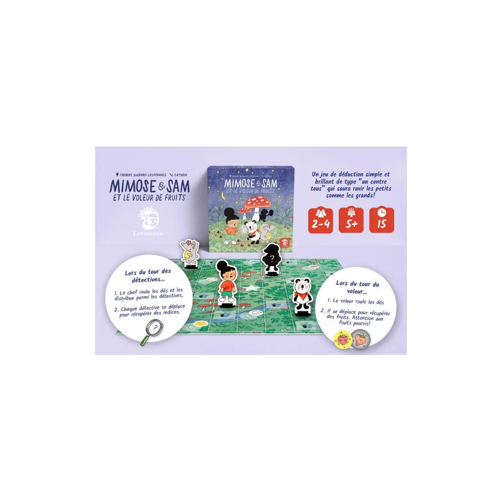 "Mimose & Sam et le voleur de fruits" est un jeu de déduction captivant pour toute la famille. Un joueur incarne le voleur tentant de subtiliser les fruits mûrs du jardin, tandis que les autres jouent le rôle de détectives coopératifs. Ce jeu stimule la réflexion critique et la coopération, offrant une expérience ludique enrichissante et amusante pour les enfants comme pour les adultes.