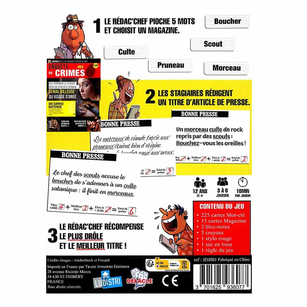 Au début de chaque tour, le Rédacteur en chef tire au sort 5 cartes Mot et sélectionne un Magazine cible. Les autres joueurs, en tant que stagiaires, s'efforcent alors de concocter un titre pertinent et créatif, en intégrant autant de mots des cartes que possible.