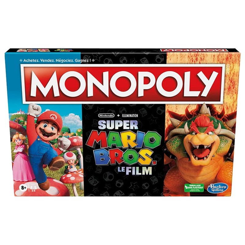 - Les joueurs achètent, vendent, échangent et complotent pour tout posséder dans ce jeu de plateau Monopoly Mario qui inclut des lieux emblématiques du film Super Mario Bros.