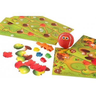 Faites rouler le hérisson sur le sol de la forêt pour collecter des pommes, des feuilles et des champignons qui vous permettront de vous déplacer sur le chemin.