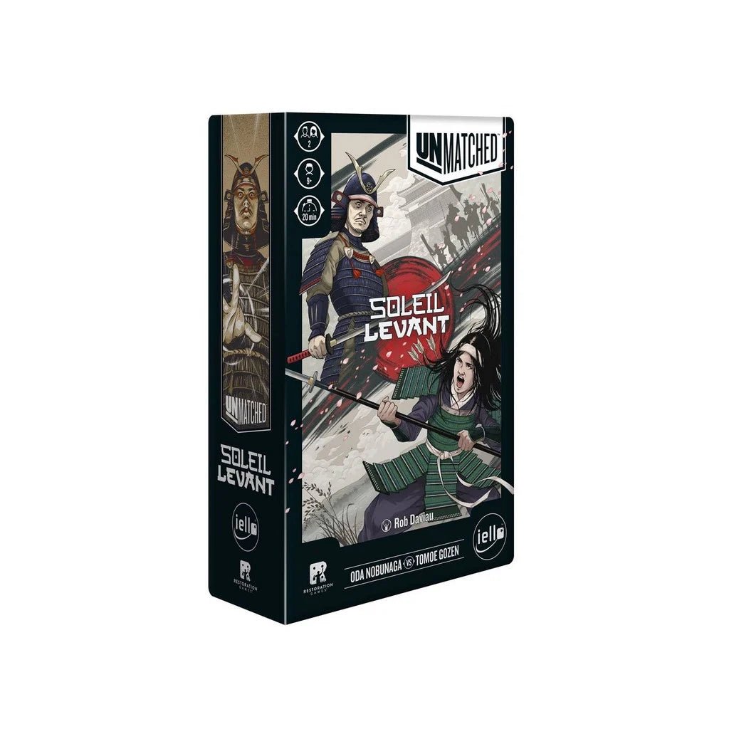 Unmatched : Soleil Levant vous transporte dans le Japon médiéval, où des légendes historiques s'affrontent dans des duels épiques. Chaque joueur choisit un héros avec un deck de cartes unique et une stratégie distinctive. Ce jeu de duels tactiques se distingue par son mélange de simplicité et de profondeur stratégique, offrant des affrontements rapides mais réfléchis. Les combinaisons de héros et de champs de bataille permettent une rejouabilité infinie, avec des stratégies qui évoluent à chaque partie.