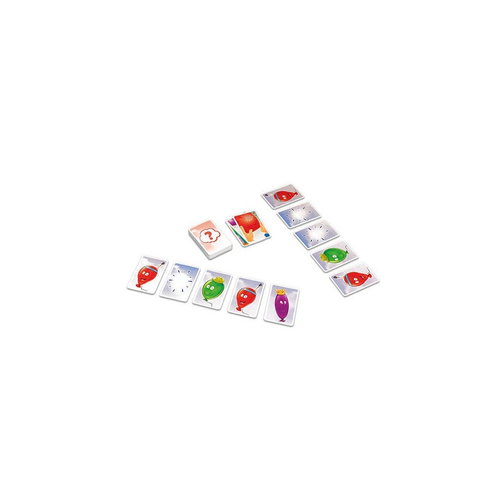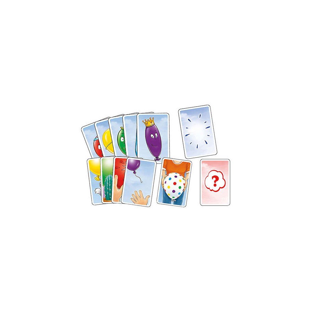 Chaque enfant a 5 jolis ballons colorés. A son tour, un joueur tourne une carte action : les griffes du chat, les piquants des roses ou le vent mauvais peuvent faire disparaître un de ses ballons... mais Maman peut le faire réapparaître.