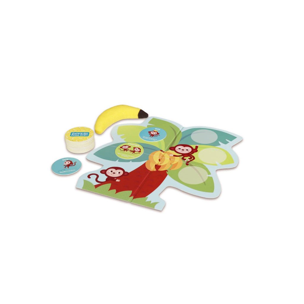 Chaque joueur pioche une carte et tout le monde doit reproduire ensemble l’action indiquée : attraper une banane, faire une grimace, se balancer comme un singe… ou encore se faire un câlin collectif