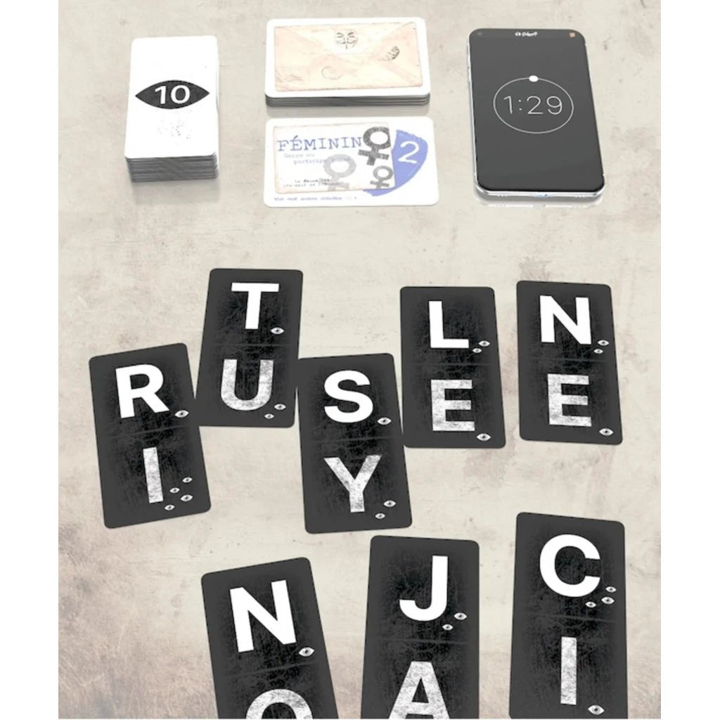 Dans la cinquième et dernière épreuve de Dictopia, vous avez deux missions de la Résistance en même temps ! Retrouver le bon nombre d'yeux qui nous surveillent et remplir une mission est toujours optionnel, ce n'est jamais une obligation. Tout le défi tactique réside dans votre capacité à savoir choisir vos combats. Évidemment, la tentation est grande de vouloir tout faire... au risque de ne faire aucun mot à la fin des 1 minute et 30 secondes du temps imparti.