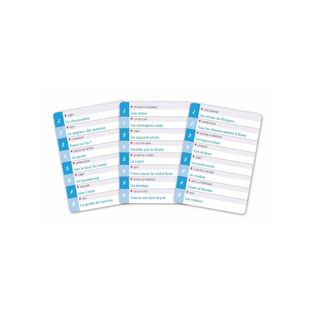 61 cartes transparentes au service de votre imagination pour faire deviner l'une des énigmes (films, lieux, personnages...). Superposez, assemblez, combinez et même animez !!!! Des possibilités infinies ! Exprimez-vous, tout est permis ! Plus de 1000 énigmes à faire deviner