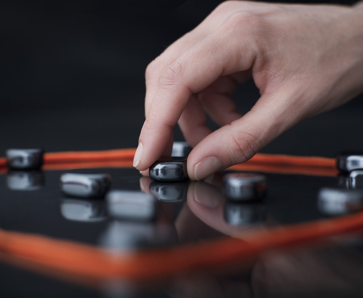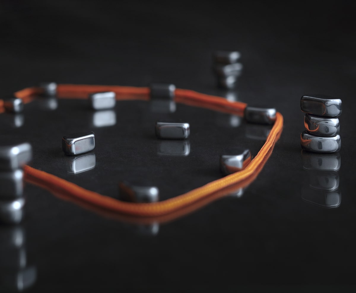 Partagez le même nombre de pierres magnétiques entre tous les joueurs. À tour de rôle, chaque joueur va devoir placer une de ses pierres aimantées dans le périmètre de la corde en évitant le contact entre les pierres.