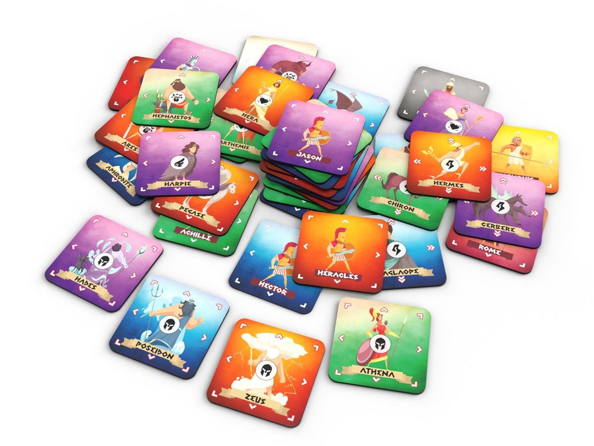Toutes les cartes "dieux" ont la capacité de recruter et de rallier à votre cause de nouveaux héros. En effet, disposées tout autour du plateaux, les cartes faces cachées pourront être retournées pour agrandir votre armée s'ils sont de votre couleur. Plus vous serez nombreux, plus cela deviendra aisé de livrer bataille.s que votre tuile rapide se déplacera deux fois plus vite, mais il y a aussi votre tuile volante qui peut se déplacer rapidement en sautant par-dessus une tuile et pour finir votre dieu majeur possède le pouvoir de recruter en diagonale des héros.
