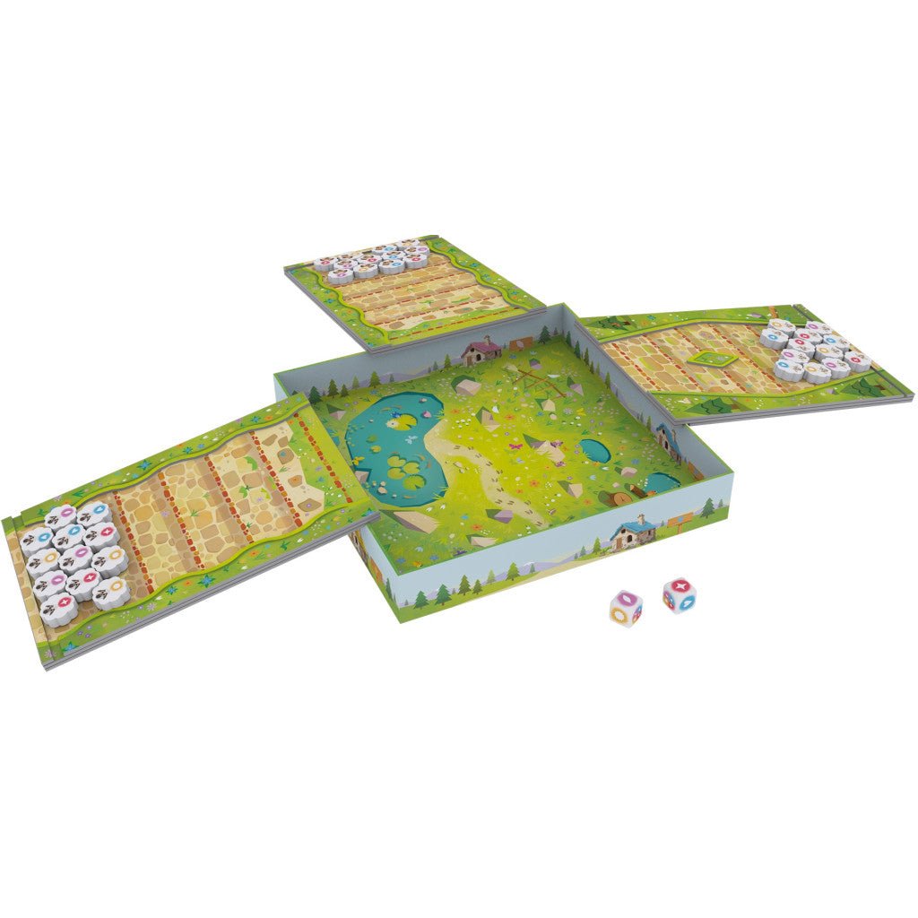 Accessible dès 5 ans, ce jeu d’adresse et de petite stratégie mêle habileté, anticipation et fous rires. Lancez les dés colorés, poussez les bonnes brebis, évitez les blocages et soyez le premier à hisser votre troupeau jusqu’à la mythique Prairie d’Herbe tendre… qui n’est autre que la boîte de jeu elle-même !