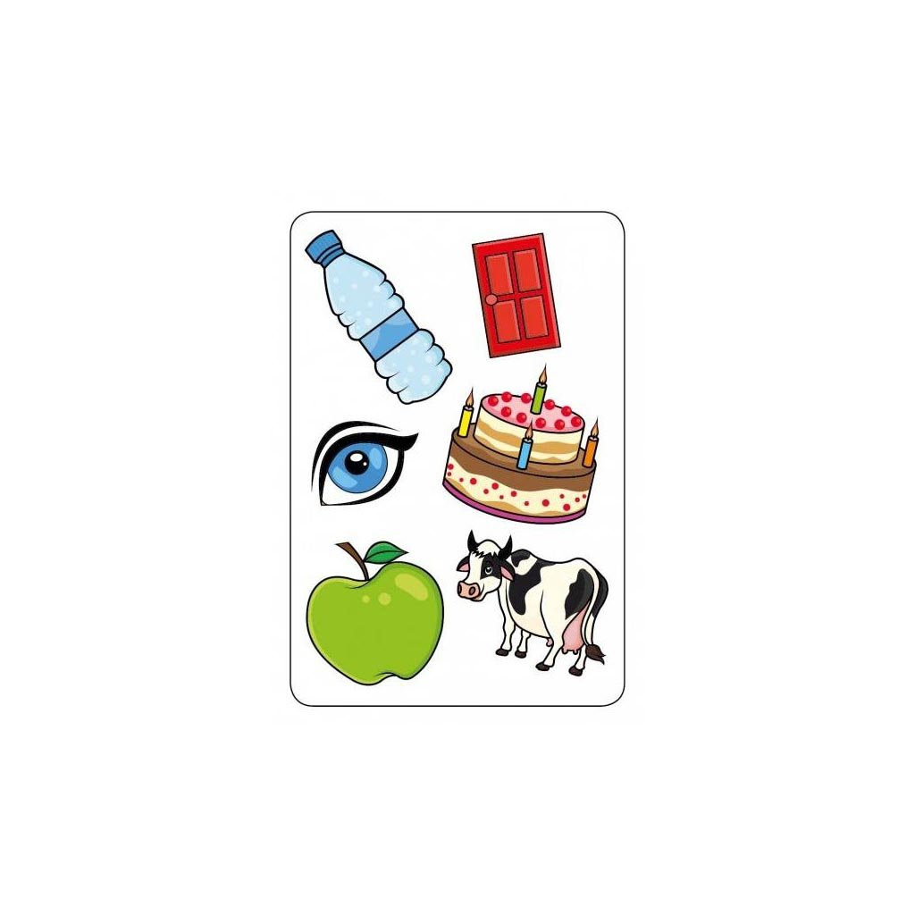 Dans Tam Tam, il s’agit de retrouver l’unique paire image-mot qui existe entre 2 cartes-images et une carte-mots.