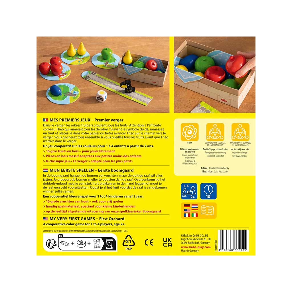 Premier Verger est un classique des jeux de coopération pour les tout-petits. Ludique et coloré, il favorise l’apprentissage des couleurs, la motricité fine et l'esprit d'équipe dès 2 ans !