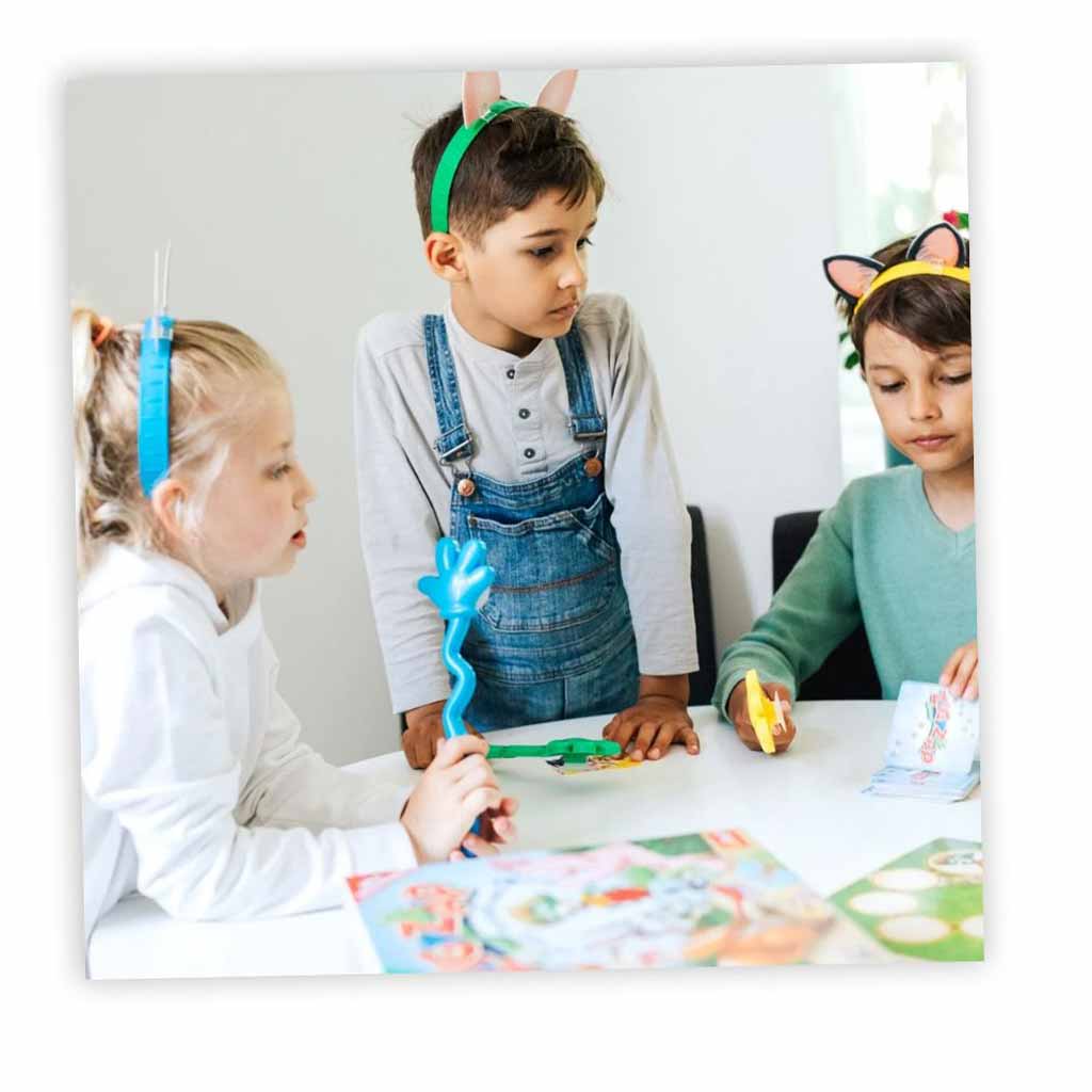 Gameplay : Le jeu se déroule au tour par tour, où chaque joueur révèle une carte de la pioche centrale. Le défi ? Chaque joueur porte des oreilles d'animaux et doit, avec adresse, utiliser sa tapette ventouse pour attraper les cartes représentant des animaux avec les mêmes oreilles. Réussir permet d'avancer d'une case, mais une erreur coûte cher : le joueur recule d'une case. La tension monte à chaque tour, jusqu'à ce qu'un joueur habile et chanceux atteigne enfin la ligne d'arrivée, déclenchant la fin de la partie.