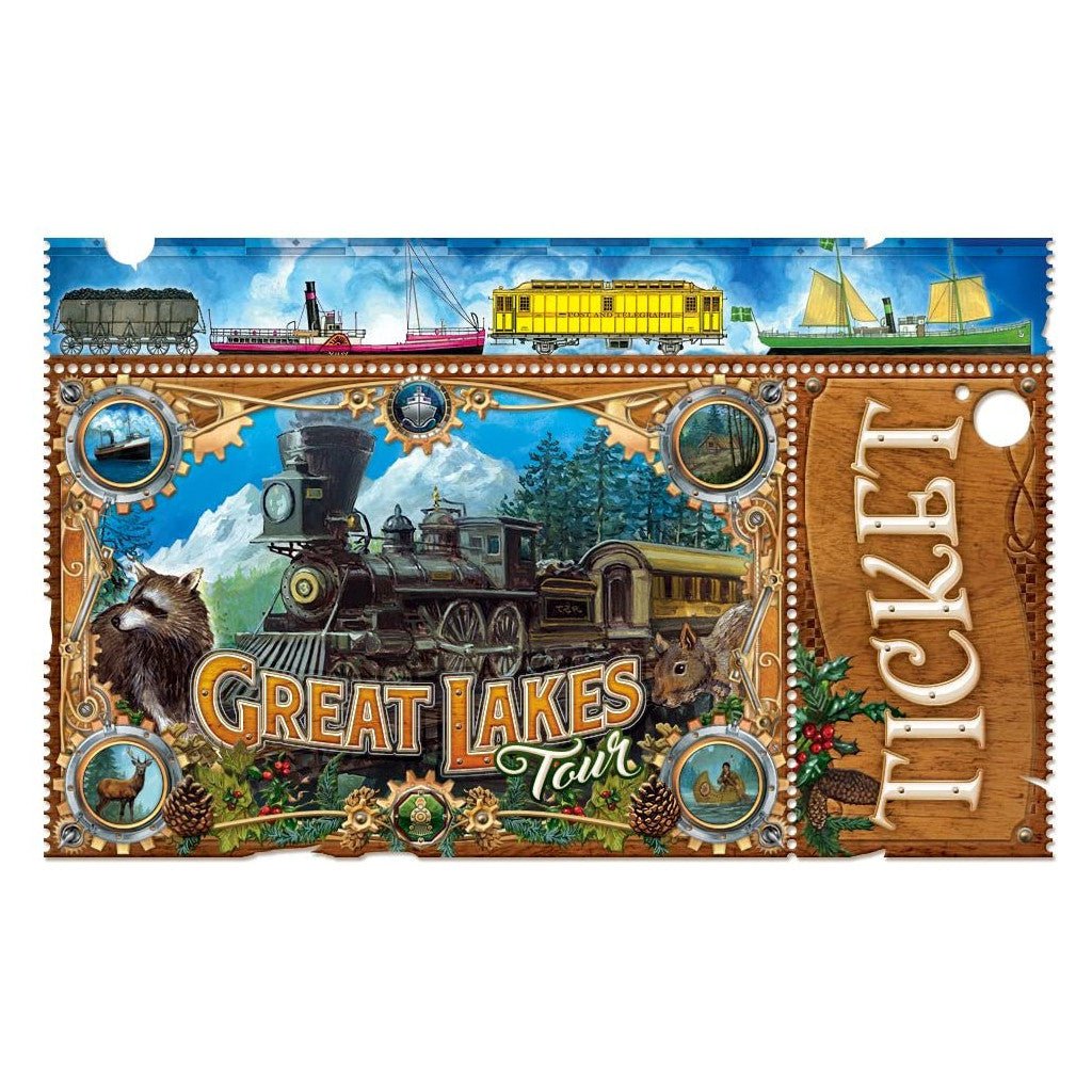 Les joueurs rassemblent des cartes de différents types (trains et bateaux) pour s’emparer des voies ferrées et maritimes sur un plateau double-face richement illustré représentant la carte du monde d’un côté et celle des Grands Lacs d’Amérique du Nord de l’autre.