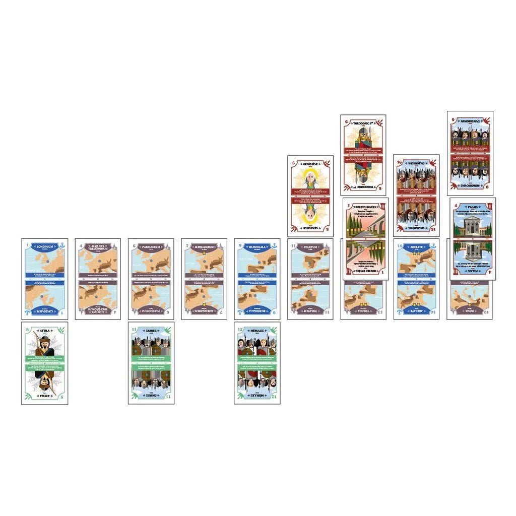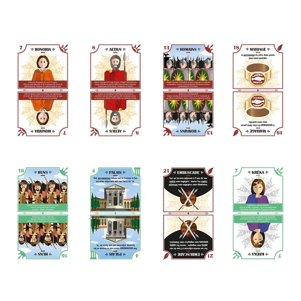 Clash 451, le destin d’Attila, est un jeu de contrôle de territoires captivant qui se déroule lors du choc entre deux grands empires de l’antiquité : celui d’Attila et celui de Rome. Créé par Romain Mathieu et illustré par Julie Gruet et Romain Mathieu, ce jeu stratégique met les joueurs au cœur de batailles historiques et de décisions tactiques intenses.