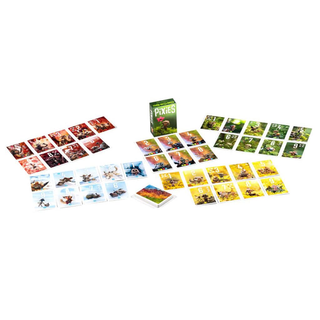 NE JOUEZ PAS CONTRE NATURE ! Découvrez Pixies, le jeu captivant qui vous transporte à travers les saisons à la rencontre d'êtres magiques émergeant d'une fleur ou dissimulés dans les arbres. À chaque tour, une décision cruciale vous attend : quelle carte allez-vous choisir ? Soyez stratégique, car les cartes que vous laissez derrière pourraient être celles qui propulsent vos adversaires vers la victoire.