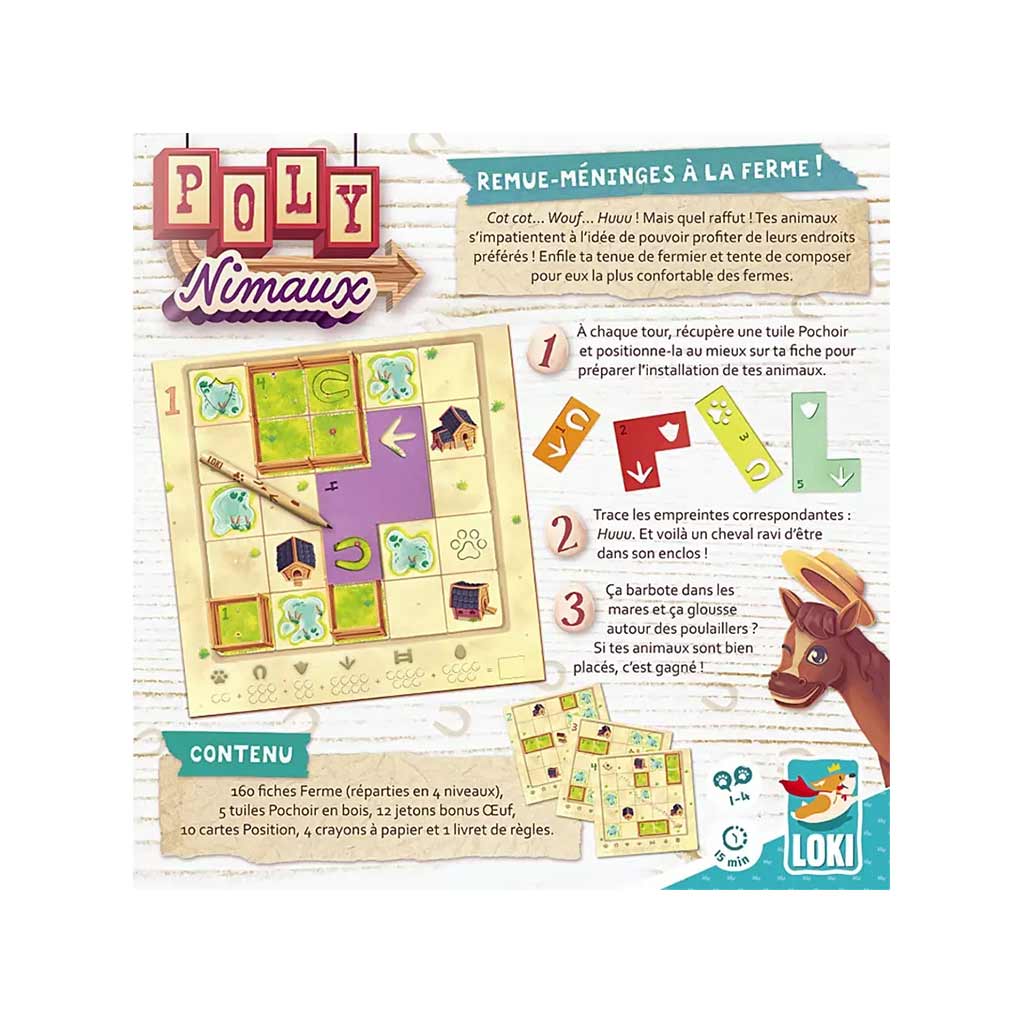 Polynimaux est un jeu Roll & Write innovant où vous incarnez un fermier devant gérer les besoins de ses animaux. Avec ses 5 pochoirs et 4 niveaux de difficulté, il offre une rejouabilité exceptionnelle. Idéal pour les enfants dès 6 ans, il stimule la réflexion et la stratégie tout en restant accessible.