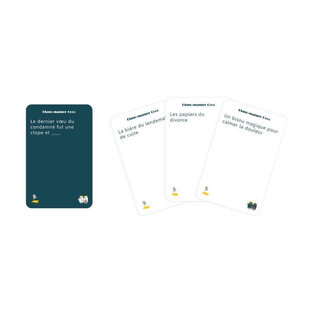 Blanc manger Coco est un jeu de cartes idéal pour l'apéro entre amis. Il est composé de 132 cartes « questions » et 468 cartes « réponses » pour une infinité de combinaisons croustillantes.