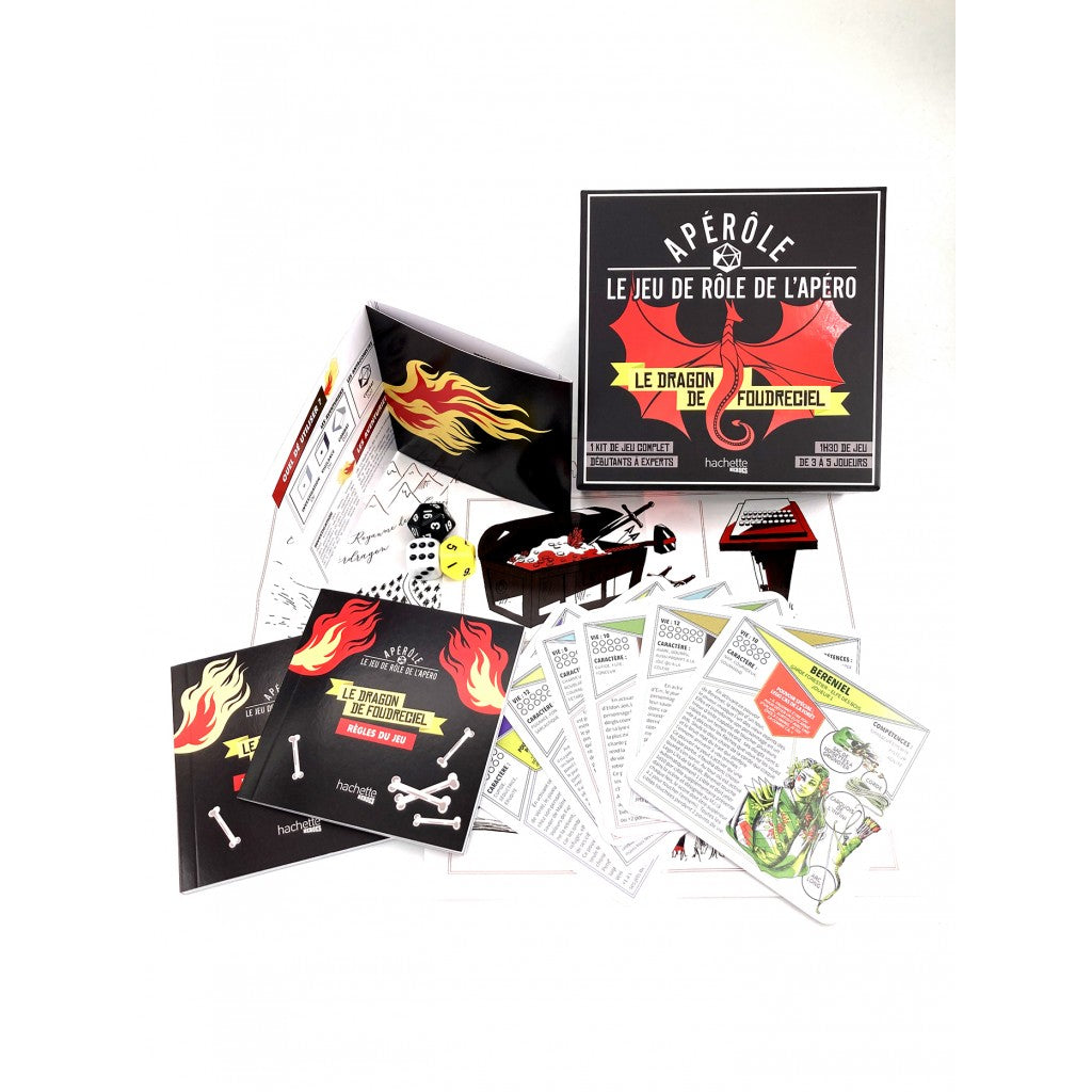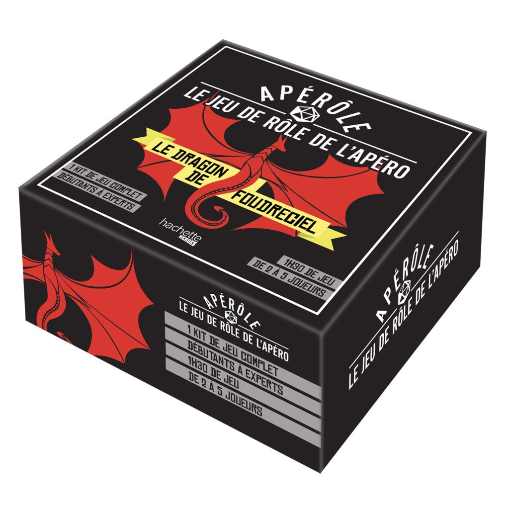 Plongez dans une légende fantastique et vivez des aventures passionnantes avec vos amis ! Concept révolutionnaire pour permettre à tous de s’immerger pendant 1 à 2h dans la peau d’un mage, d’un chevalier errant ou d’un orc avec ses amis le temps d’une soirée ou d’un apéro. Inclus dans la boîte un kit complet pour un jeu de rôle : des cartes personnages prêts à jouer, un scénario avec toutes les indications pour le maître du jeu, des posters pour présenter les lieux et des dés spéciaux.