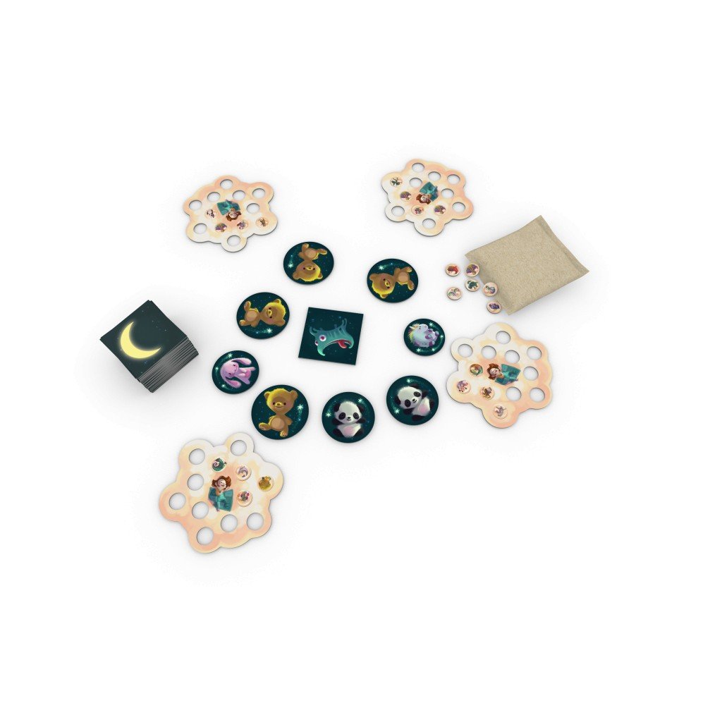 Attrape Rêves est un jeu de société à partir de 4 ans. Plongez dans vos rêves et chacun votre tour, choisissez le bon doudou pour recouvrir toute la forme des cauchemars. Mais observez bien car plus votre doudou est petit plus il vous rapportera des jetons rêve pour remplir votre nuage !
