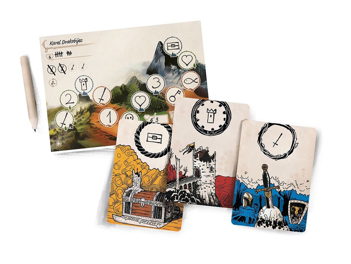 Pour maximiser les points, vous devrez faire en sorte que la quête de votre héros se passe le mieux possible. Chaque carte évènement a des propriétés et vous rapporte un nombre de points selon son placement sur le parcours du héros et ses caractéristiques. Par exemple, une carte "Obstacle" représente un ennemi. Chaque ennemi peut être terrassé avec une carte "Epée". Chaque ennemi terrassé vous rapporte un montant de points. A contrario si trop d'ennemis vous inflige des blessures vous ne marquerez plus de points. Il faudra donc essayer dans la mesure du possible de placer un évènement "Epée" avant chaque ennemi.
