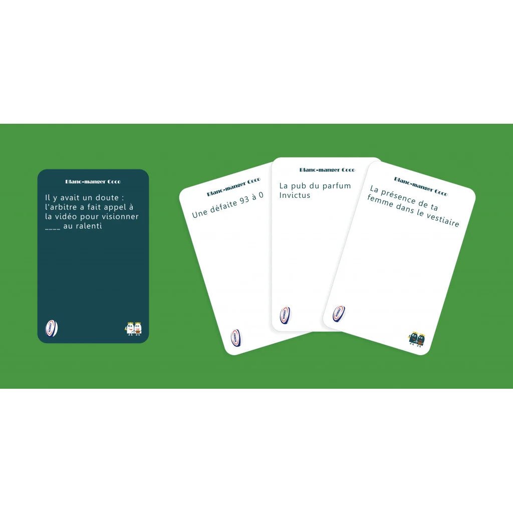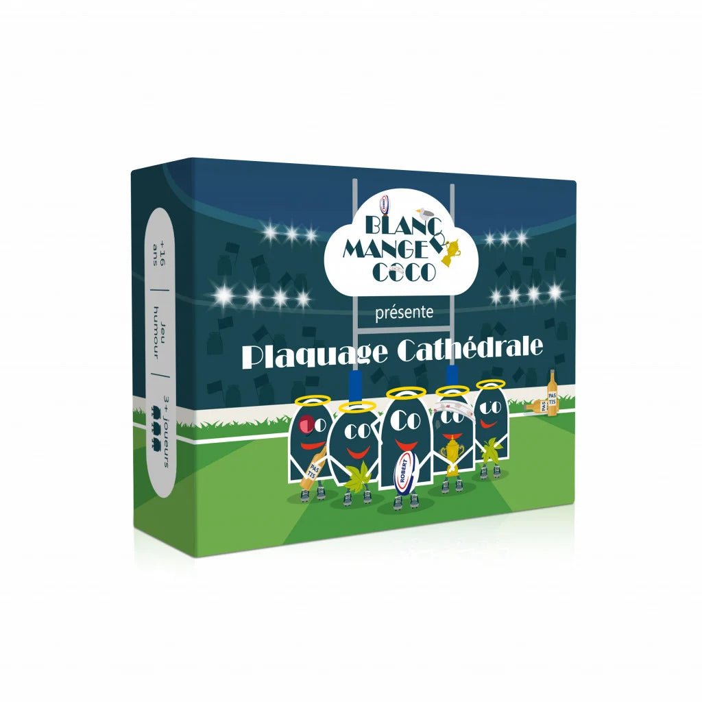 Plaquage Cathédrale est une extension du jeu Blanc Manger Coco. Elle est composée de 200 cartes (160 réponses et 40 phrases à trous) portant toutes sur la thématique du Rugby.