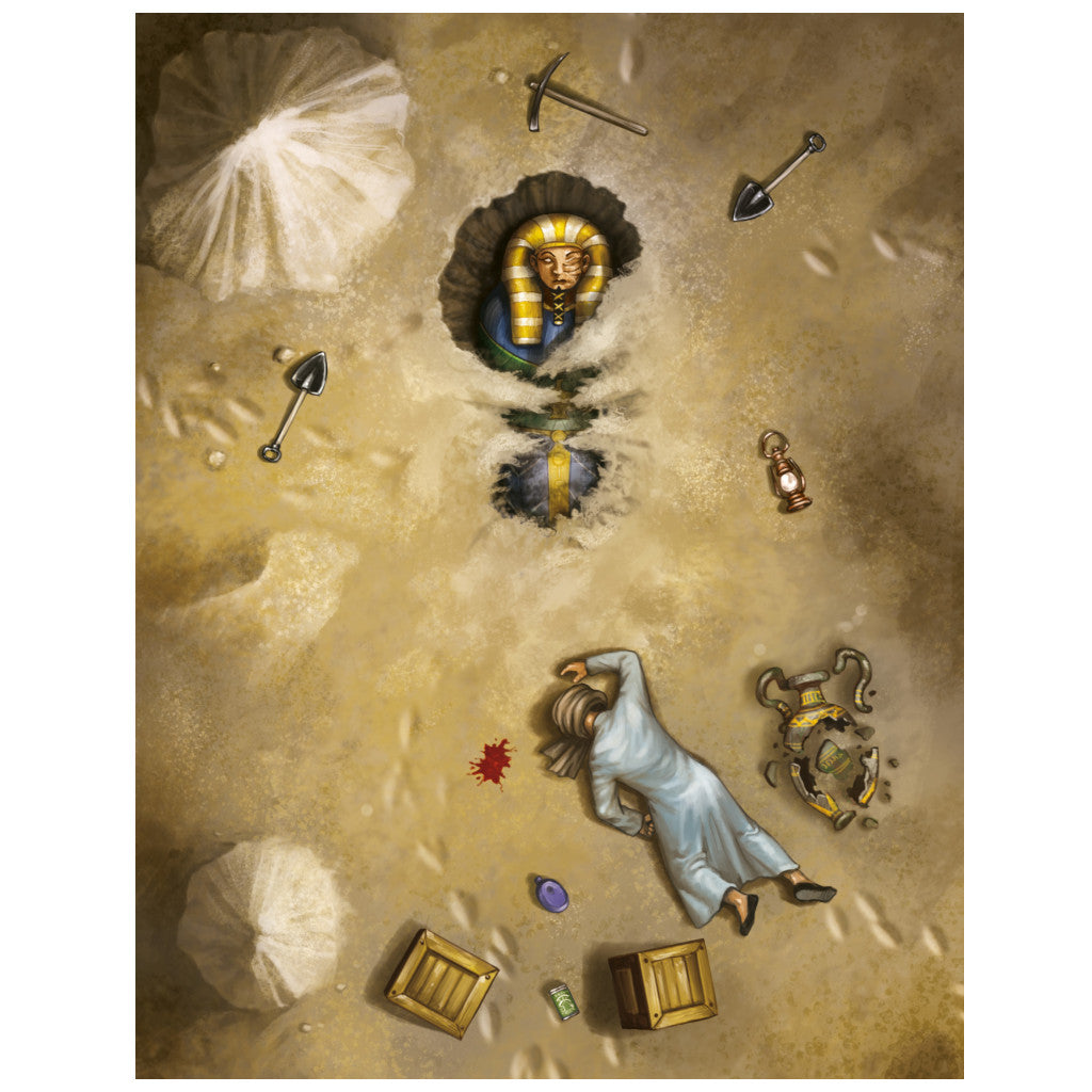 Trois pilleurs de tombe ont attaqué un chantier archéologique pour voler de précieux artefacts avant de disparaître dans le désert égyptien. Un corps sans vie repose sur le sable… Qui sont les voleurs ? Comment la victime est-elle morte ?