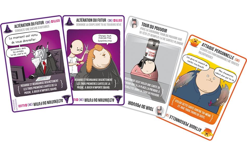 Barking Kittens introduit 20 nouvelles cartes, ainsi qu’une Couronne, qui n’est pas une collerette de la honte (ouf !). Celle ou celui qui la porte peut y garder des cartes secrètes, bien en évidence, pour faire suer les autres. Certaines cartes, qui ne portent évidemment pas le nom de cette extension, permettent à un joueur de combiner sa main à celle d’un autre. Mais que pour les bonnes choses. Pas pour les mauvaises !