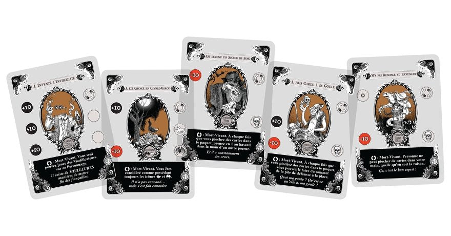 Dans Morts sans Repos, les revenants entrent en jeu grâce à des Modificateurs Mort-Vivant qui vous changent en vampire, momie, fantôme, goule, canard-garou, homme invisible ou portrait hanté.