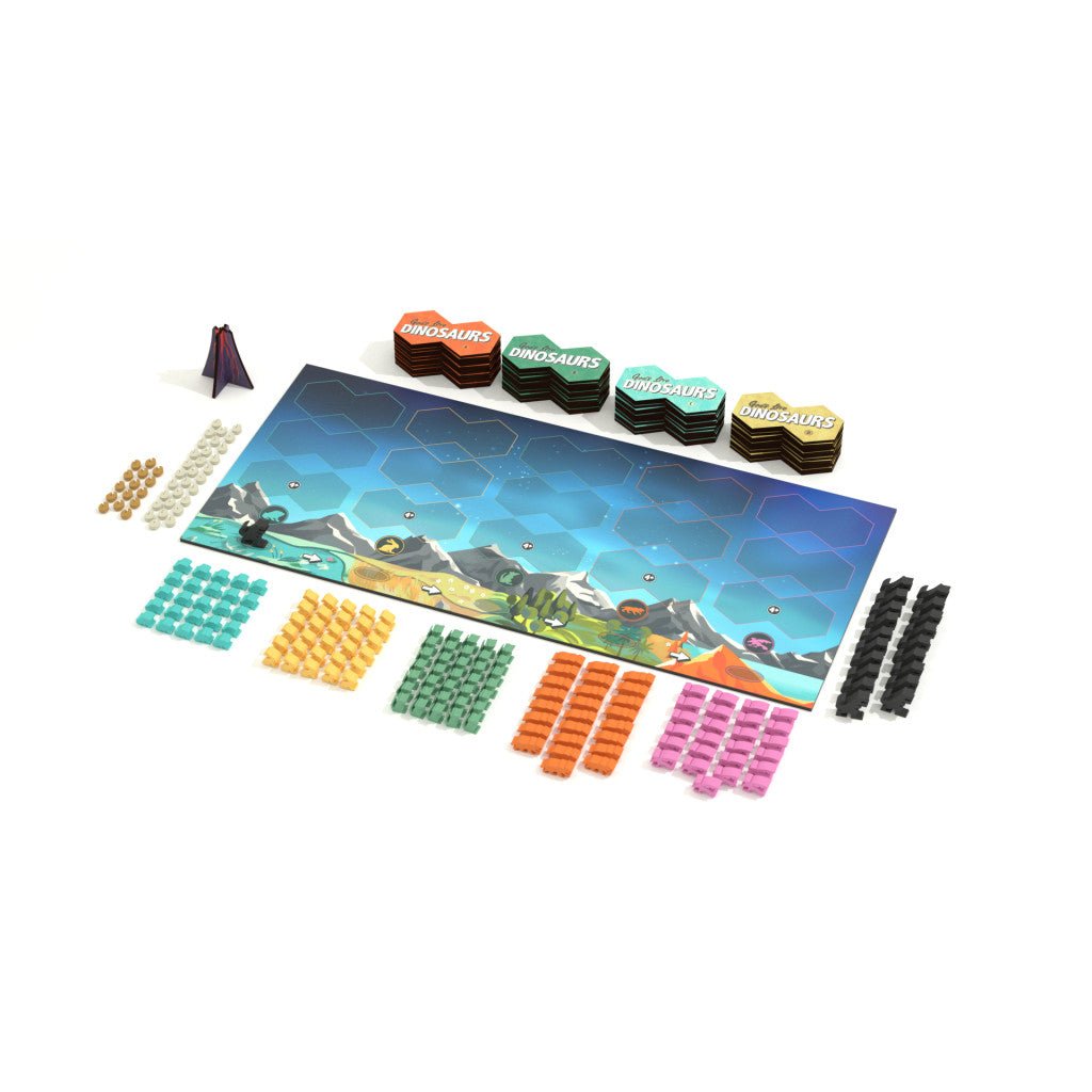 À chaque tour, vous ajoutez une tuile à votre écosystème, pour obtenir de nouveaux animaux et leur offrir l’espace nécessaire pour se multiplier. De temps à autre, vos Dinosaures seront lâchés dans votre écosystème, dévorant tous les animaux. Plus ils mangent, plus ils pondent d'œufs - et plus vous marquez de points !