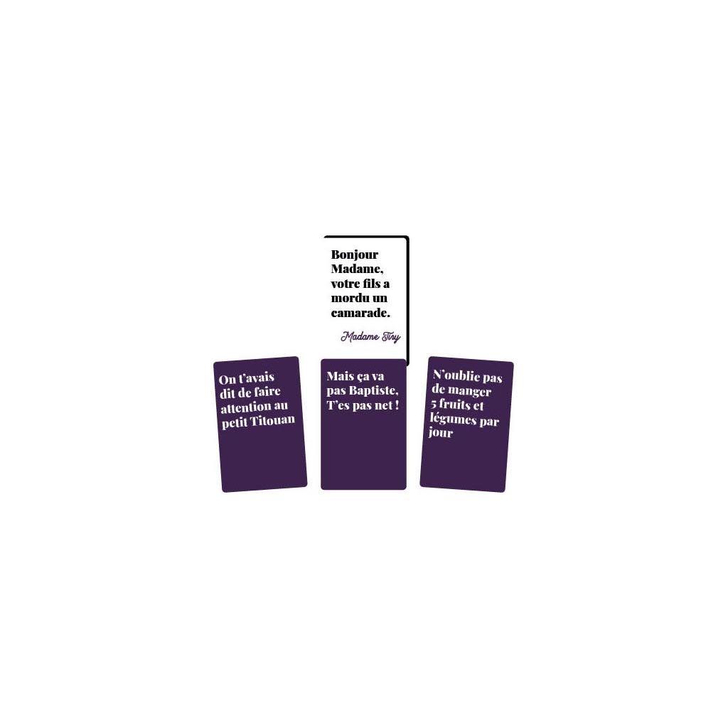 Chaque joueur reçoit 12 cartes réponses. Le 1er maître du jeu pioche une carte situation dans la pile et la lit à haute voix. Tous les autres joueurs choisissent une carte réponse dans leur jeu qui complète au mieux la carte posée, et la dépose face cachée sur la table. Le maître du jeu mélange les cartes réponses posées et les lit une à une en répétant à chaque fois la carte situation. Le Maître du jeu choisit la carte qu'il trouve la plus drôle, et donne un point (la carte situation) au joueur qui l'a posée. Pour la manche suivante, le joueur qui a gagné le point devient le maître du jeu. Les joueurs piochent une carte réponse pour en avoir toujours 12 dans le jeu. Le premier joueur qui marque 7 points gagne la partie, mais il est fortement conseillé de continuer au-delà !
