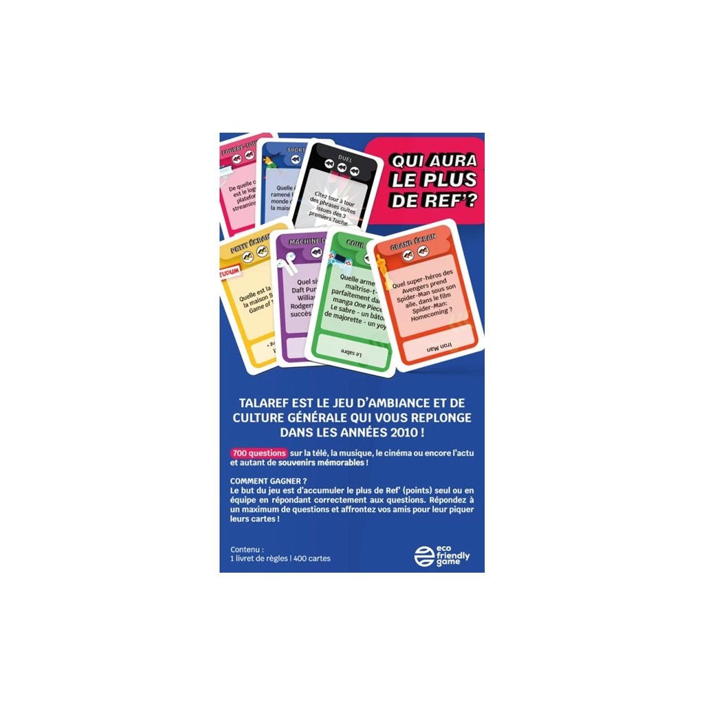 Le principe est simple : répondez correctement aux questions pour accumuler un maximum de Ref’, seul ou en équipe. Et si vous voulez vraiment prendre l’avantage… affrontez vos amis pour leur piquer leurs cartes !