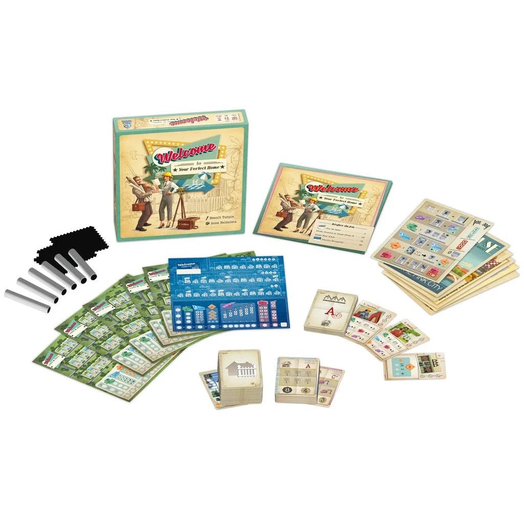 Dans le jeu Welcome, tout le monde joue en même temps avec le même tirage de cartes. Il s'agit alors pour chaque architecte de combiner astucieusement les numéros de maison apparus et les actions associées afin de devenir le ou la plus grande architecte de demain !